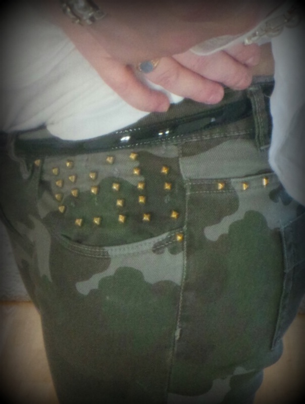 One thing I love not being pregnant anymore, is to open my closet and jump in to all my dear pants and jeans I´ve longed to wear;=) Like these camo jeans from Zara with studs I love: