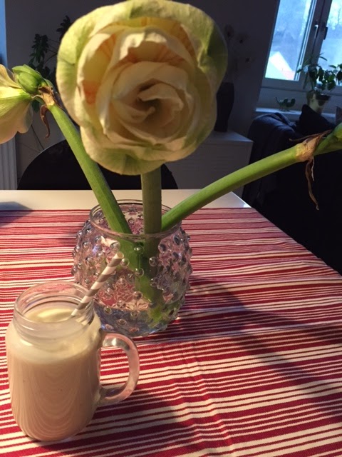 Well hello Thursday and I have had a horrible night without sleep due to the kids being up all night rumbling around and finally we all slept in our big bed and I had Mio on my arm so kinda tired and blurry today… but well, I am up and I just had my yummie morning smoothie and here´s the recipe for today. And here u also can see my beautiful amaryllis standing on the table: